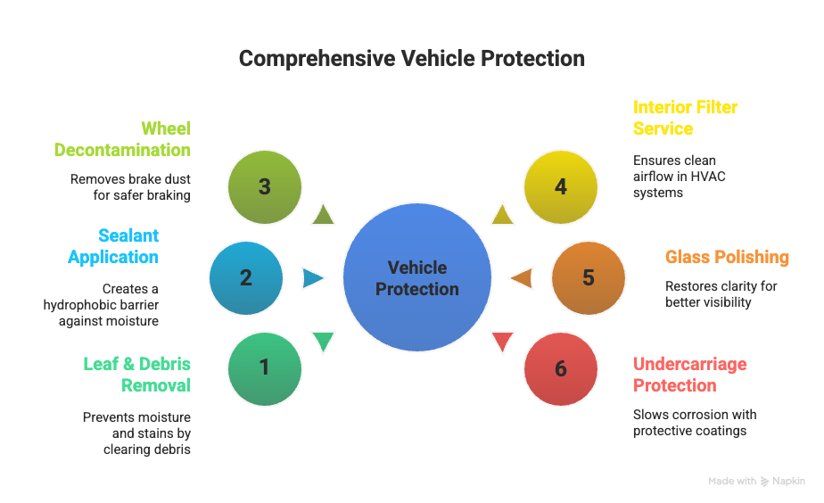 A quick drive-through wash might rinse away the obvious dirt, but it doesn’t stand a chance against fall’s layered, invisible threats. Those brushes won’t reach the debris trapped in your drains, the film of tannin on your clear coat, or the fine brake dust bonding to your wheels. And they certainly won’t protect your paint from what’s coming next.