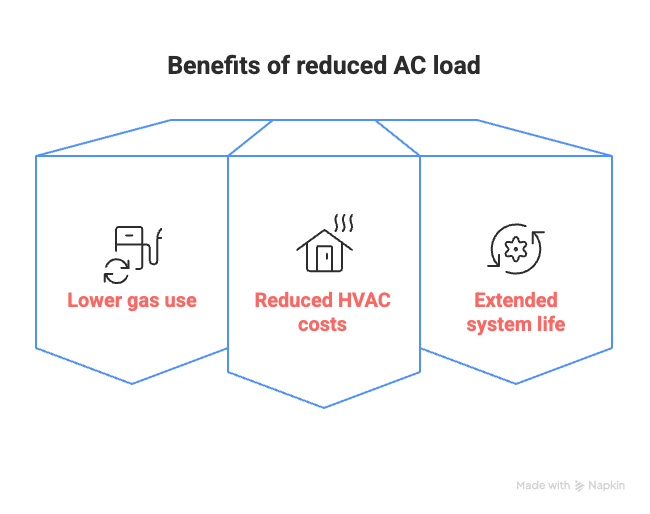 A professional tint install can shave up to 60% of solar heat from your interior. Over the course of a single summer, that can translate to measurable gains: